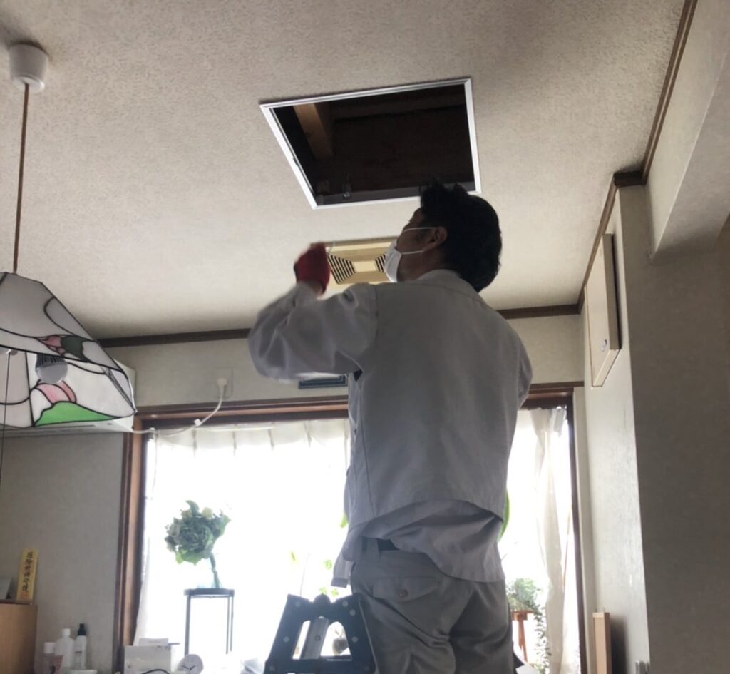 天井裏に入るとイタチが堂々と歩いており、近づくと威嚇してくる状況でした。