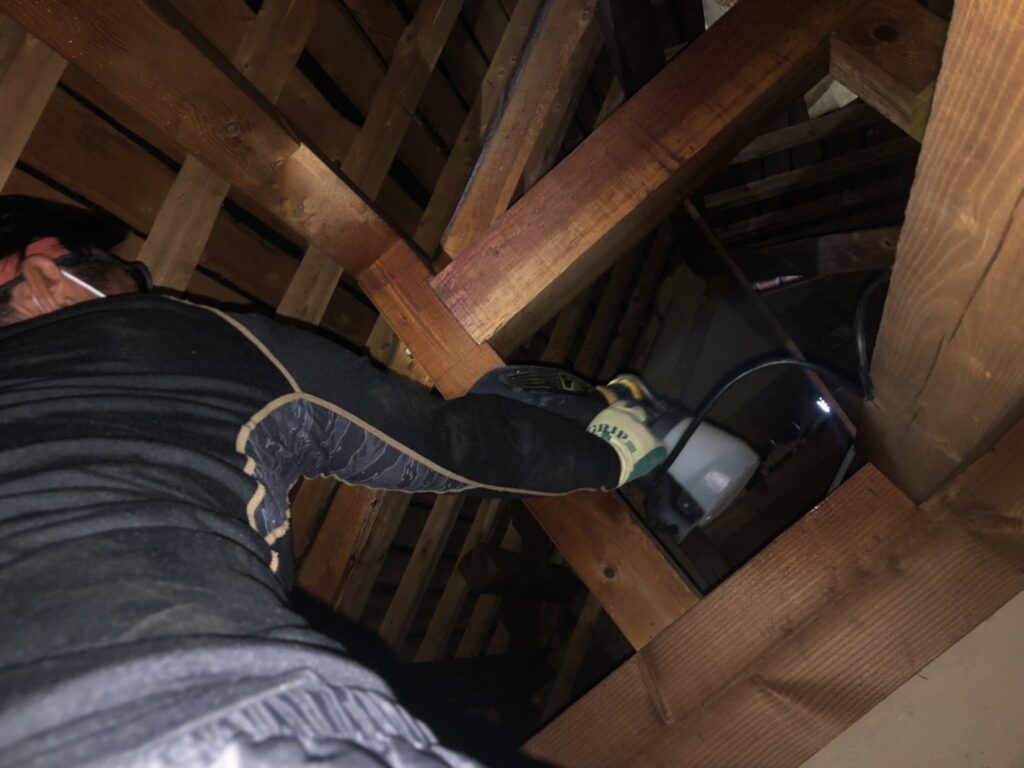 複数の侵入経路を確認し封鎖工事を行い、お客様のご要望により、断熱材の撤去をいたしました。