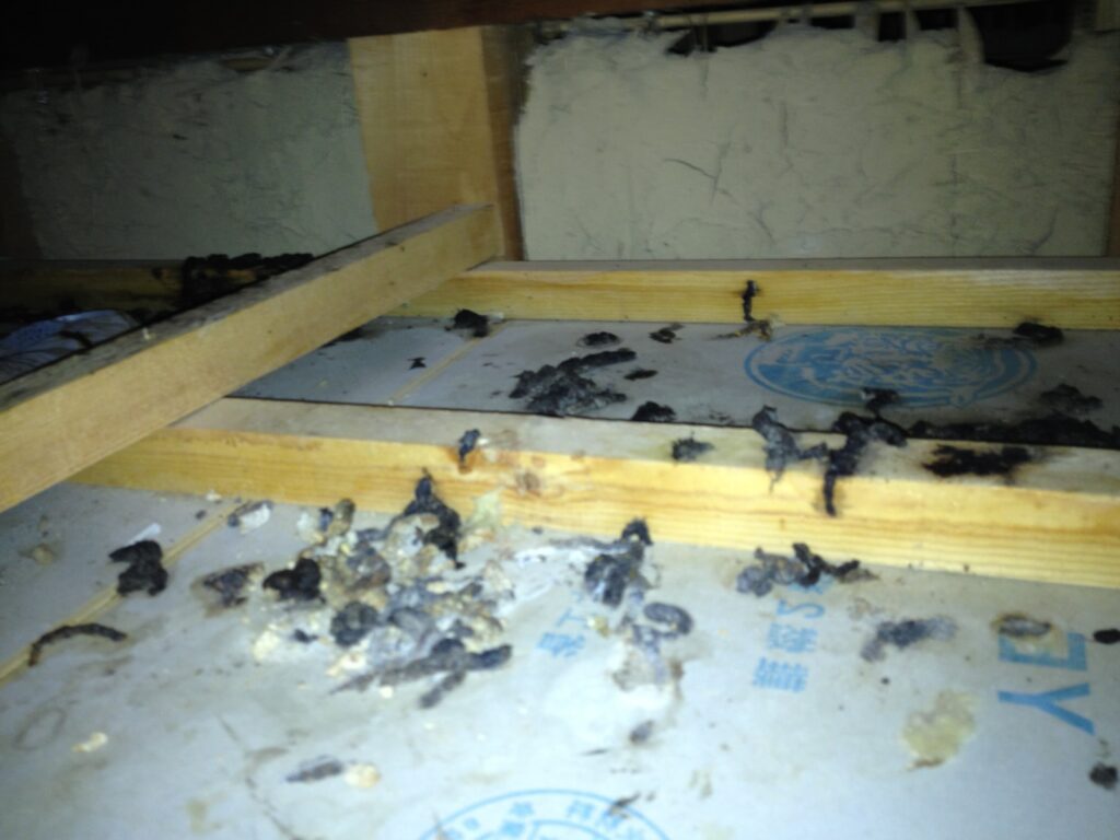 糞尿で断熱材や天井板にシミを作り、悪臭を放つようになり、さらにダニやゴキブリ発生の温床にもなります。