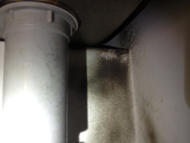 お伺いして調査すると洗面所下の配管の壁に黒い汚れのラットサインを確認しました。お客様も全く気づかなかったそうです。
