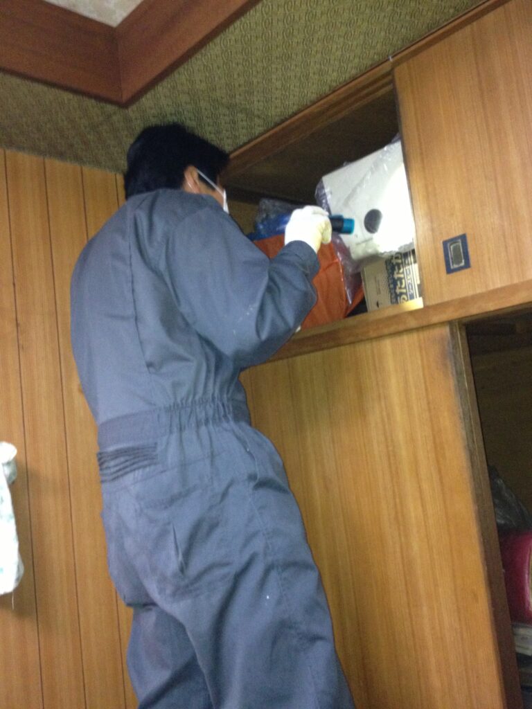 ネズミ駆除の後は、室内にてウイルスや細菌の殺菌・消毒とダニ対策として殺虫作業を行い完了です。