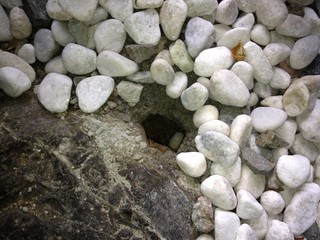 お庭の玉石で見えないことも多く、素人の方や経験の少ない駆除業者にはわかりません。