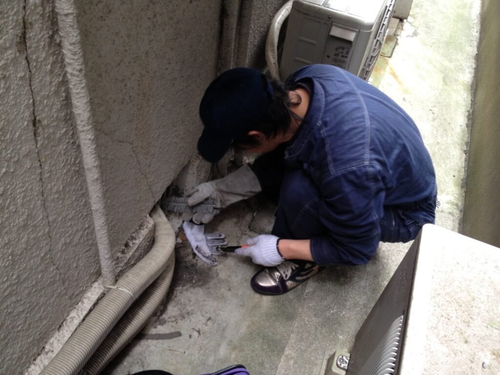 他にも雨戸や室外機のホースの隙間など侵入箇所となりそうなところがあり、合計8箇所の封鎖工事を行いました。
